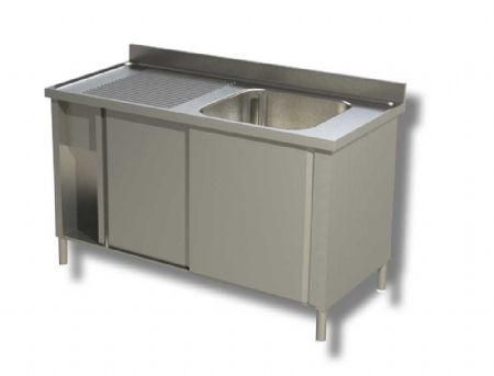Évier inox 1 bac à gauche avec portes coulissantes - 1400x600 mm