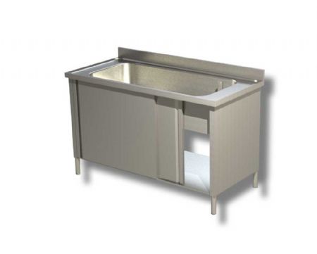 Plonge inox adossée avec 1 bac 2 portes coulissantes - 1200x600x850 mm
