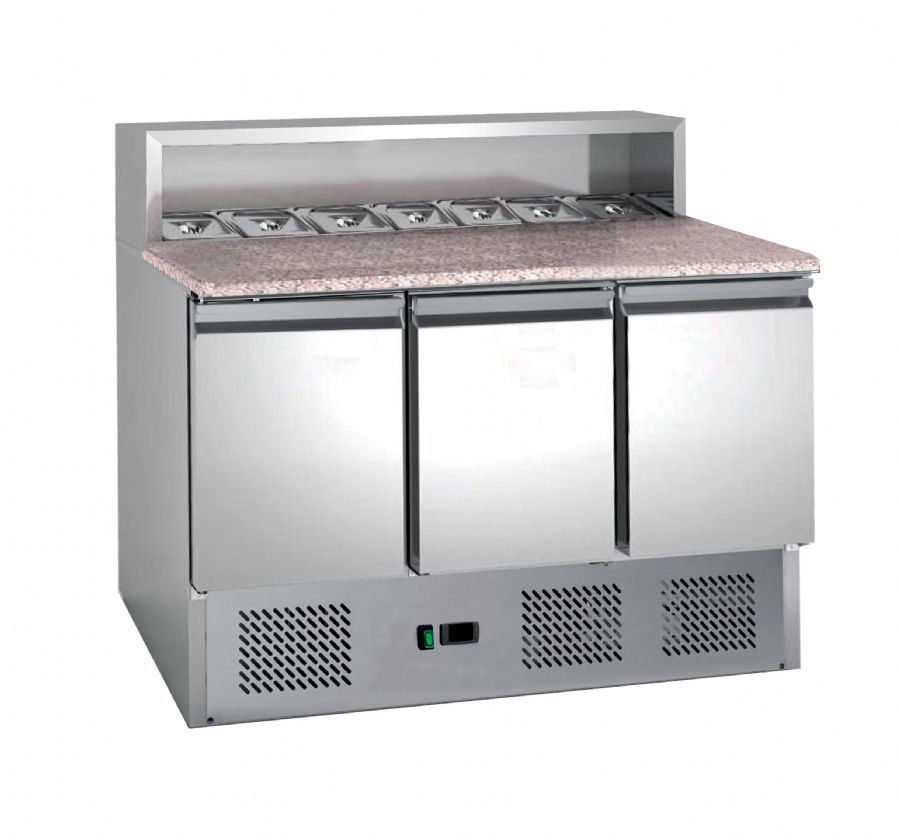 Table à pizza positive dessus granit avec 3 portes GN 1/1 - 1365x700x890 mm
