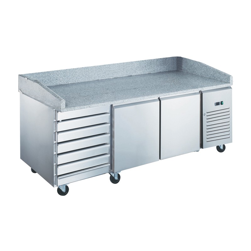 Table à pizza réfrigérée positive inox dessus granite avec 2 portes et 7 tiroirs 600x400 - 2045 x 800 x 1000 mm