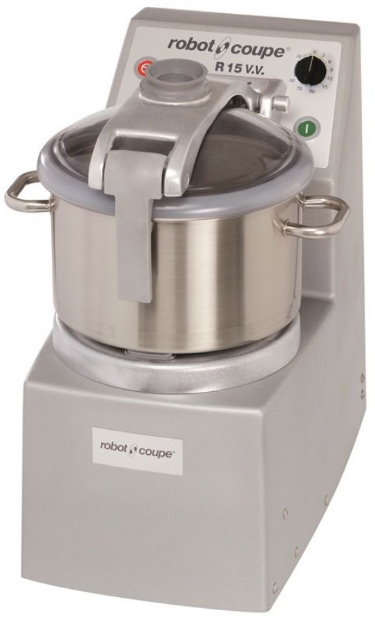 Cutter professionnel de table à vitesse variable avec cuve inox 15L - 300 à 3500 trs/min