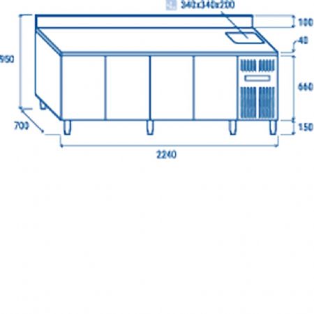 Table réfrigérée positive 0°C à +8°C 4 portes avec évier et dosseret GN1/1 inox 630L - 2240x700x950 mm