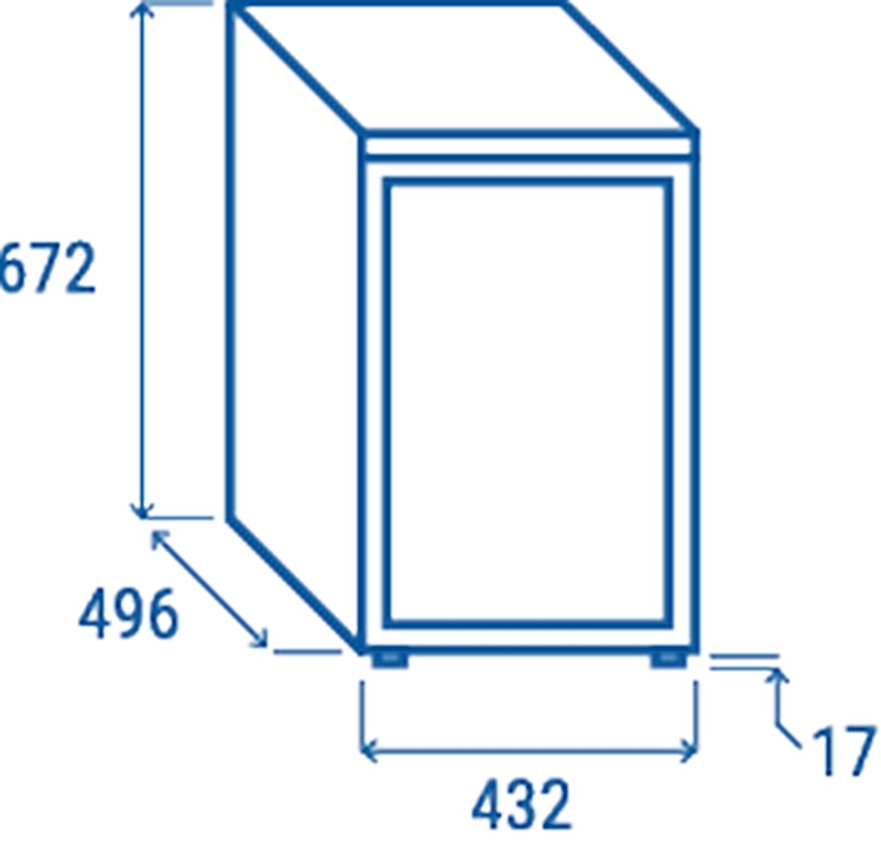 Dimensions : 432x496x672 Dimensions intérieur : 356x368x557 Puissance (W) : 80 Capacité (L) : 67 Classe énergétique : C Température : +0°C à +10°C Contenant : 3 clayettes (noires) ajustables / pieds réglables Réfrigérant : R600aPoids (kg) : 32.5