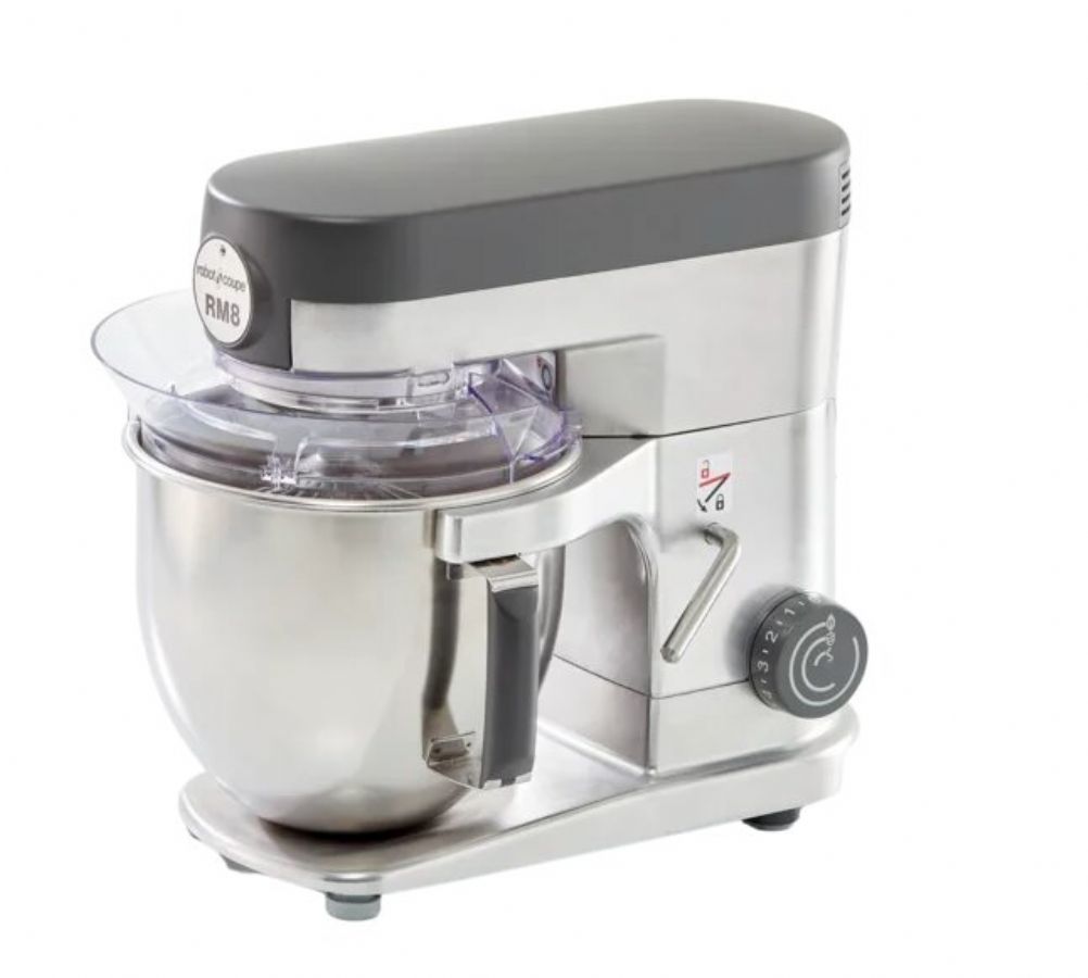 Ce batteur mélangeur professionnel RM8 est un concentré de solutions modulables pour les pros, doté d'un moteur asynchrone puissant de 700 W et de vitesses variables de 60 à 600 tours par minute. Sa cuve inox de 7,6 L avec poignée et ses outils inclus (fouet, palette, spirale inox) assurent une réponse aux demandes en temps réel dans les cuisines professionnelles.