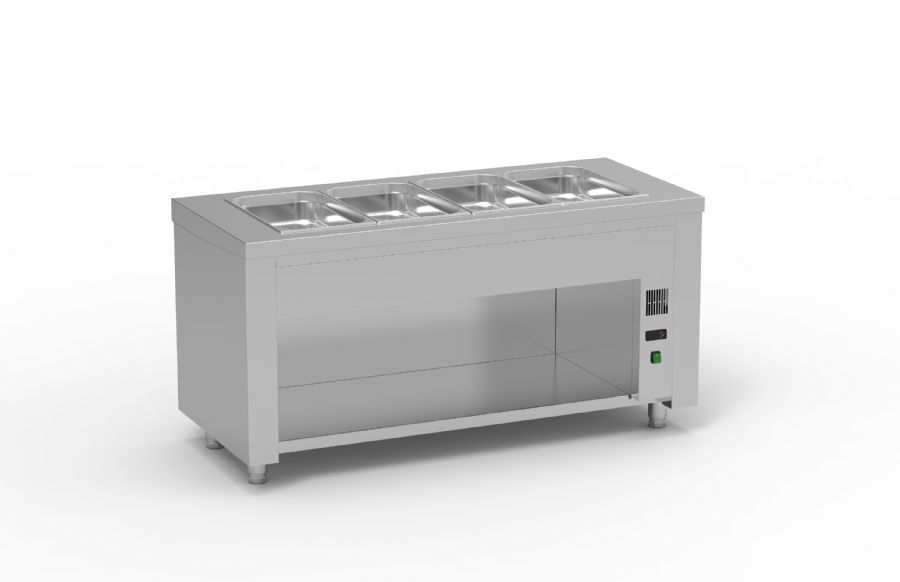 Meuble inox bain-marie à eau avec réserve neutre 4 bacs GN1/1-200 - 1600x700x850 mm