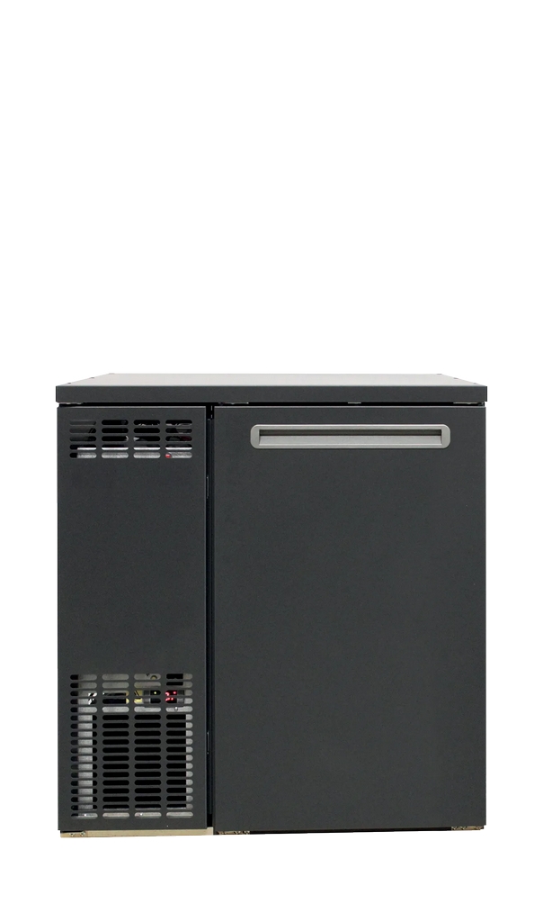 Table réfrigérée noire pour fût avec 1 porte pleine battante 100 L - 555 x 590 x 860 mm