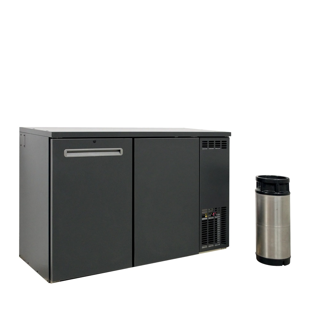 Table réfrigérée noire pour fût avec 2 portes pleines battantes 360 L - 1350 x 590 x 860 mm