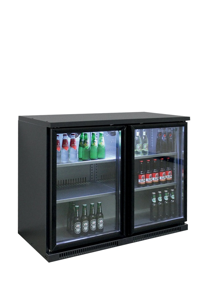 Arrière bar froid noir 2 portes vitrées battantes - température +2/+10°C - 1110x620x840