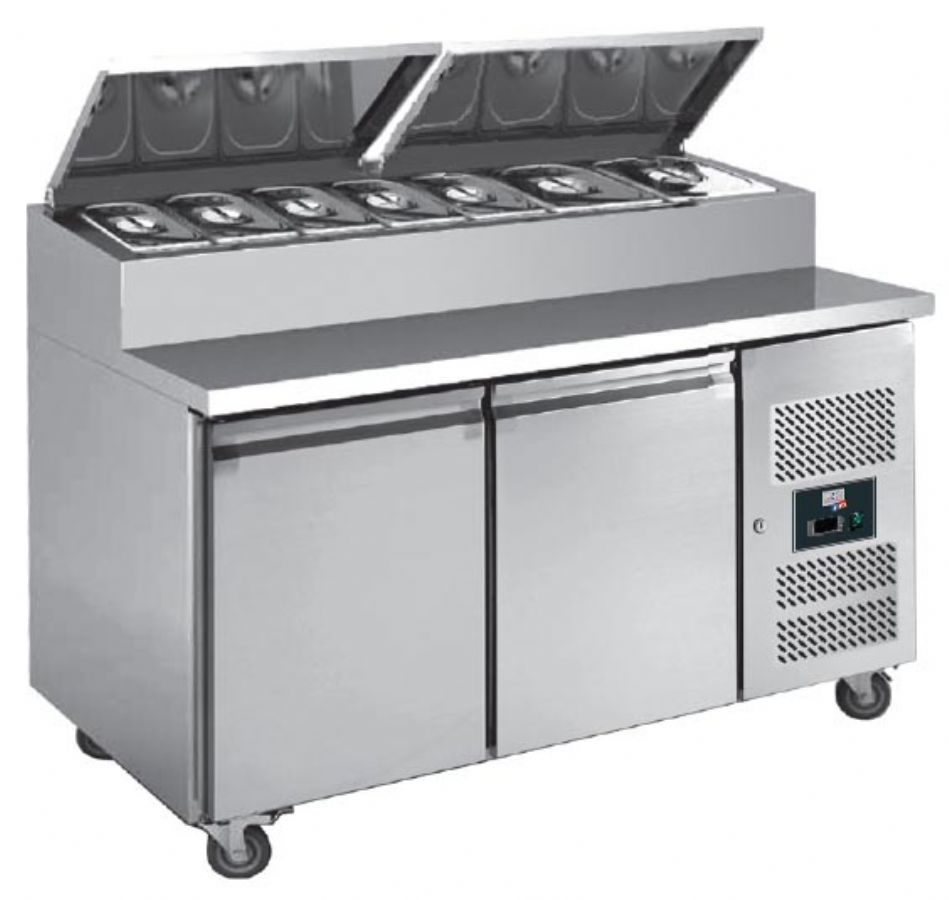 Table de travail réfrigérée positive avec 2 portes GN 1/1 et saladette bacs GN 1/3 - 1360x715x1080 mm