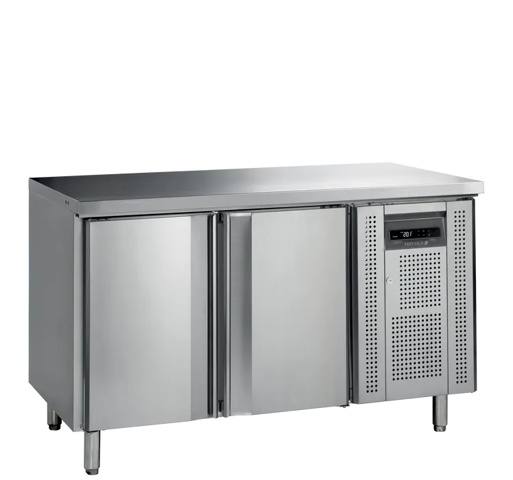 Table réfrigérée positive comptoir snack inox avec 2 portes pleines sans dosseret - 1360 x 600 x 880 mm
