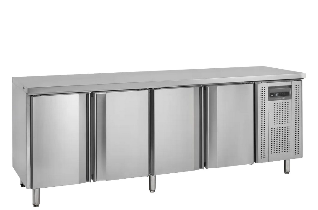 Table réfrigérée négative inox avec 4 portes pleines sans dosseret 460 L - 2230 x 600 x 920 mm