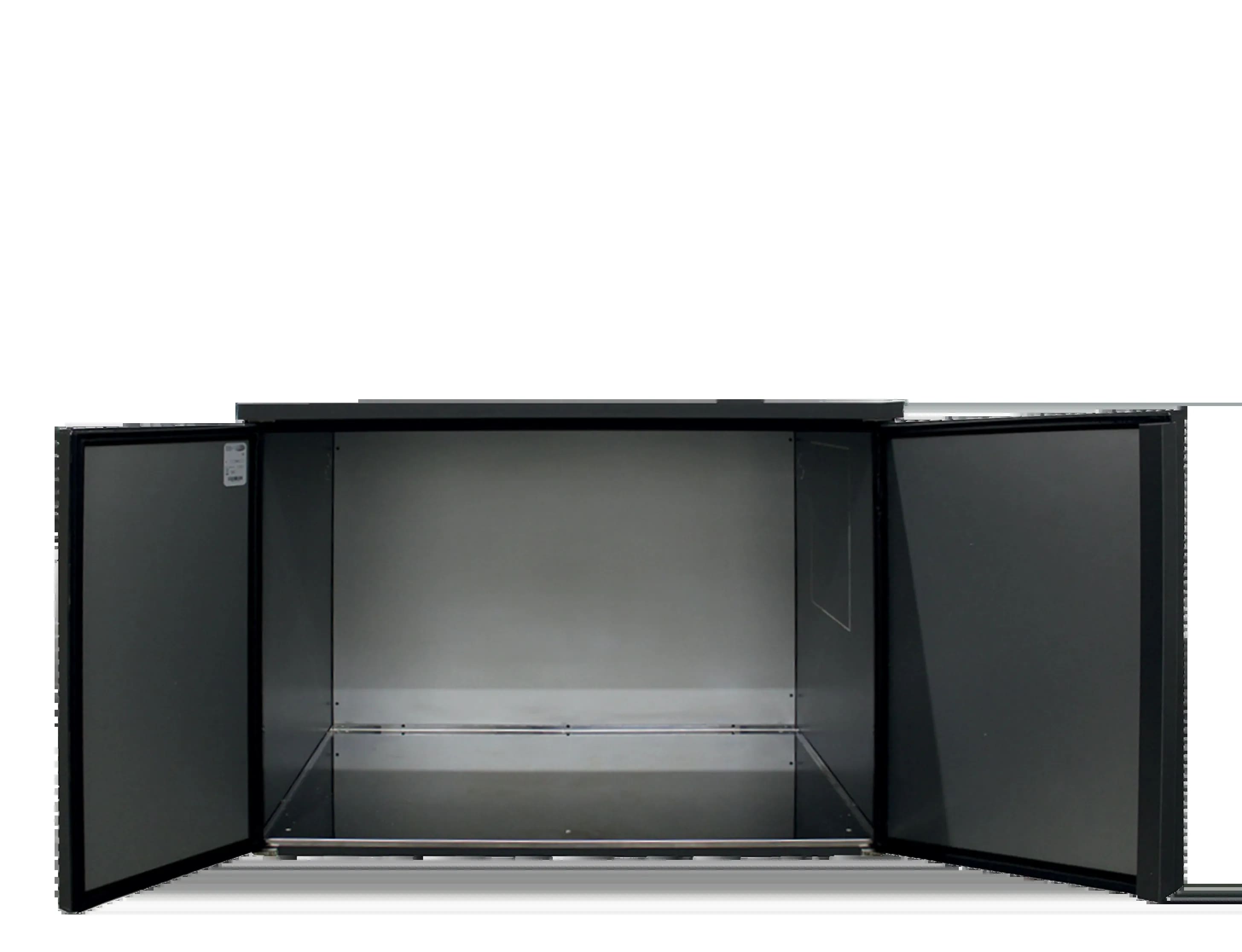 Table réfrigérée noire pour fût avec 2 portes pleines battantes 360 L - 1350 x 590 x 860 mm