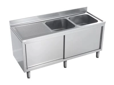 Plonge avec un meuble à porte coulissante 2 bacs au centre - 2000x700x850mm