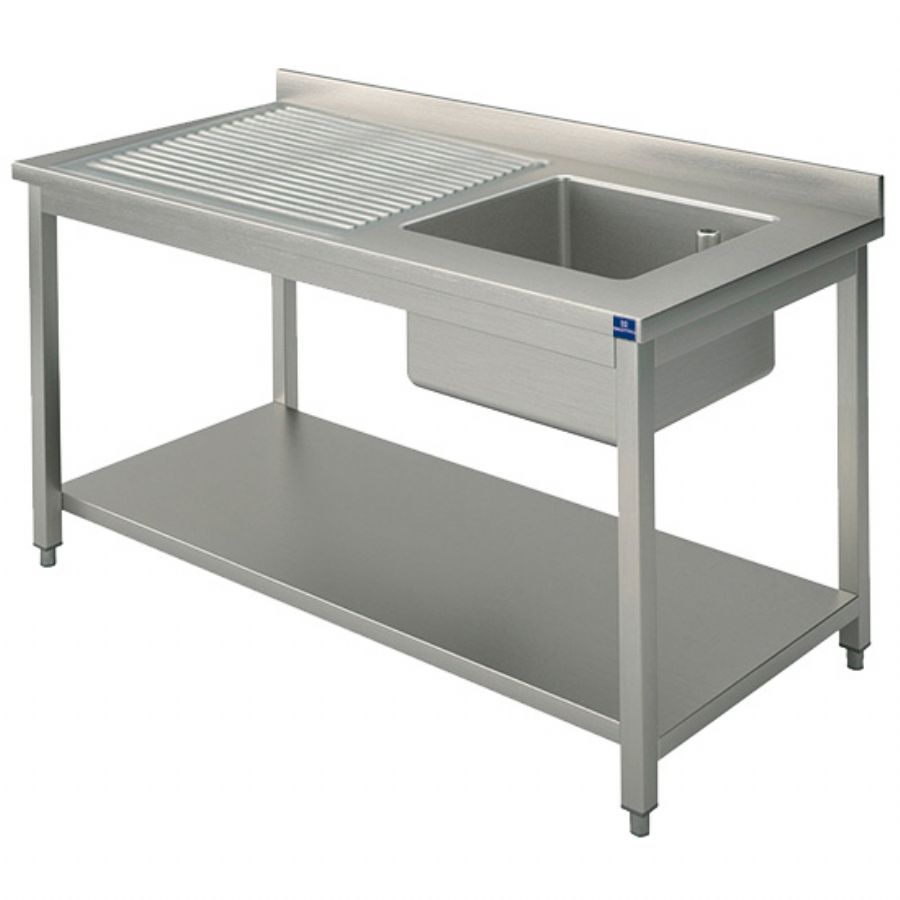 Plonge inox adossée 1 bac à droite avec tablette - 1400x700x850 mm
