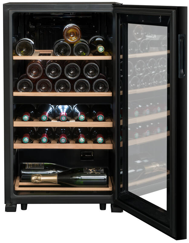 Cave à vin professionnelle noire bi-température avec une porte vitrée - 119 bouteilles
