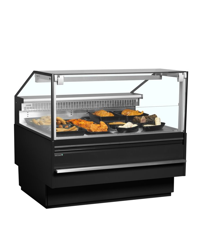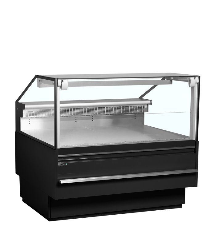 Comptoir vitrine réfrigéré à vitre droite à angle droit sur pistons avec réserve - NOIR - 1500x1085x1280