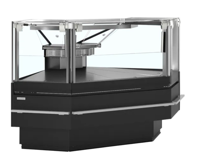 Le meuble SOCA90EXTB a été développé pour créer un angle extérieur dans un linéaire de comptoirs froids professionnels. Il permet une orientation ouverte vers le client tout en facilitant le travail à l’arrière grâce à une structure étroite côté service. Le vitrage frontal droit conserve la même esthétique que les autres modules, avec une jonction propre et fluide à 90 degrés. La conservation est assurée entre 0 et +4 °C, ce qui convient parfaitement aux produits frais destinés à la vente en libre-service assisté ou à la coupe.