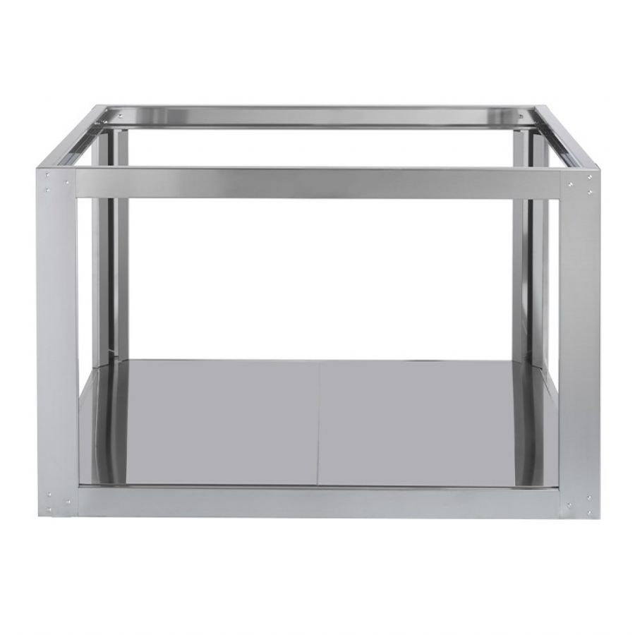Support pour four à pizza en acier inox avec plateau de support.