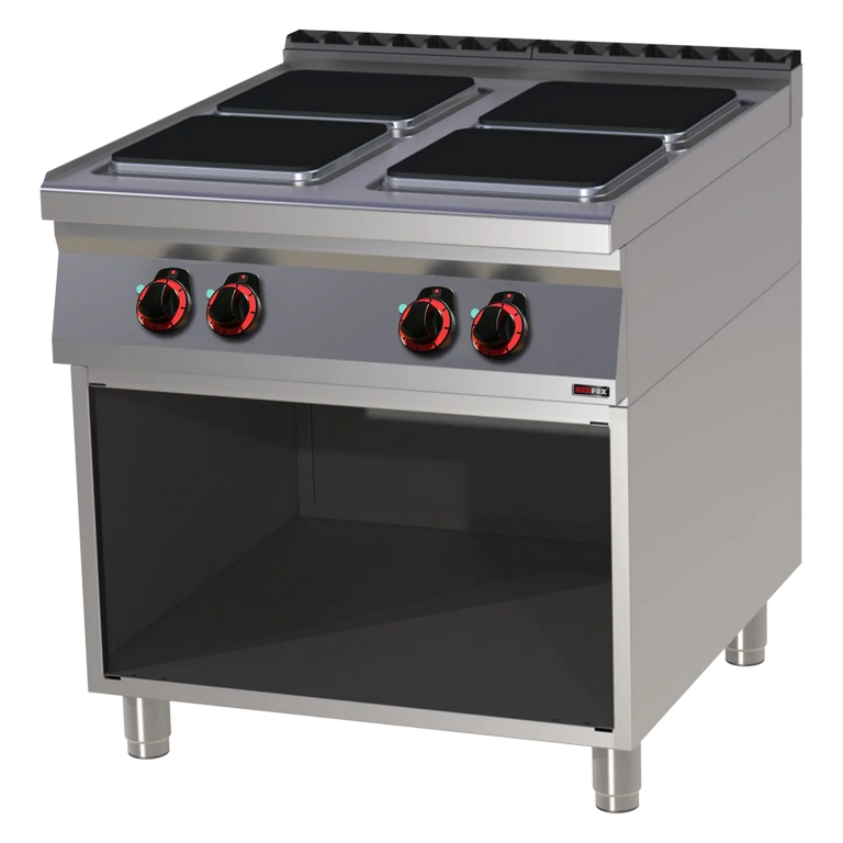 Fourneau céramique triphasé 4 plaques de cuissons sur meuble ouvert - 800x970x930 mm