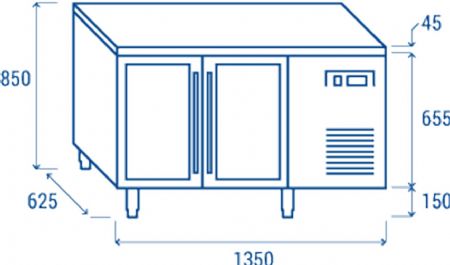 La température peut varier de +3 à +10 degrés. Cette table réfrigérée contient 4 clayettes réglables ainsi que de 4 pieds ajustables (avec roulette verrouillable en option). Des tiroirs sont également disponible sous forme de kits distincts.