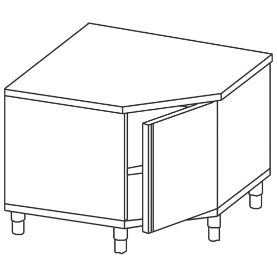 Table armoire neutre d’angle en inox avec 1 porte battante 700 x 1000 x 850 mm