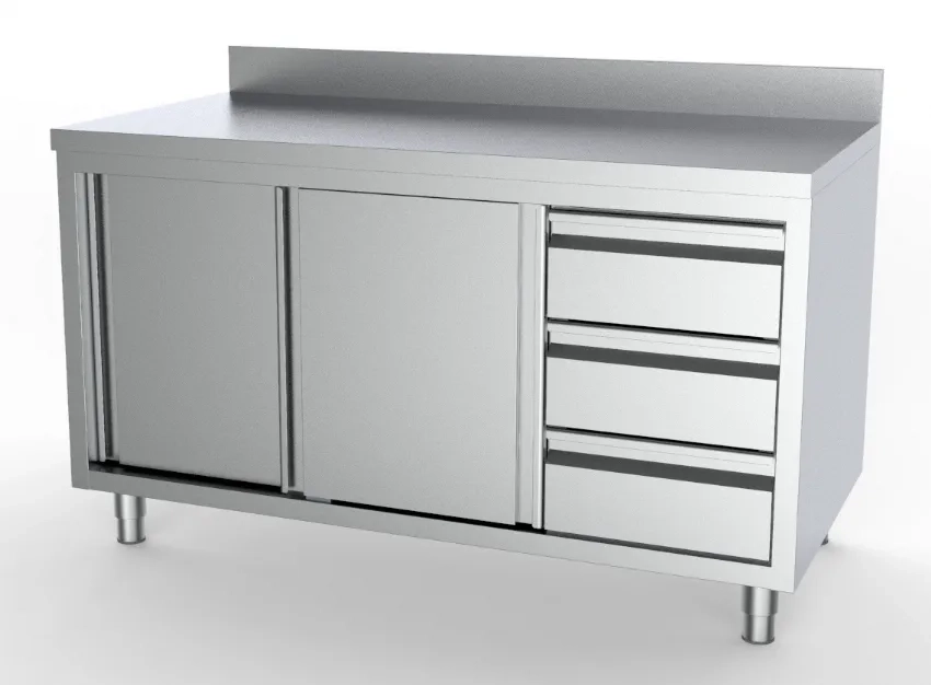 Table armoire neutre en inox avec 2 portes coulissantes et 1 tiroir 1800x700 mm