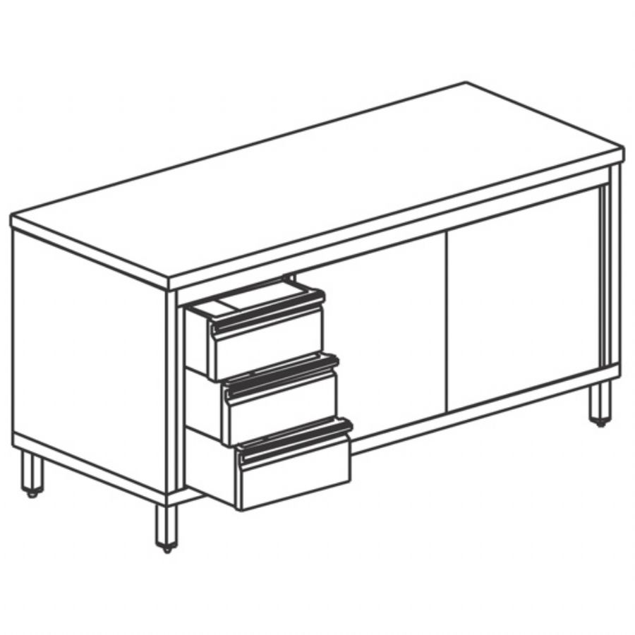 Table armoire neutre inox avec 1 tiroir côté gauche et 2 portes coulissantes 1900x600 mm