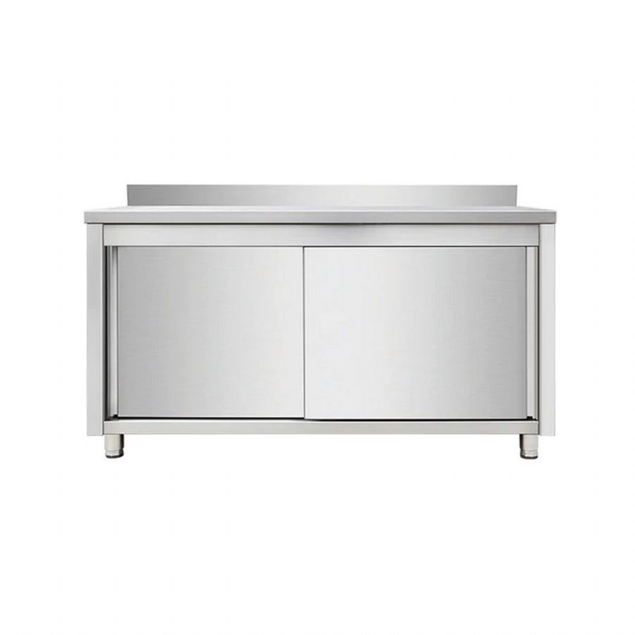 Meuble bas en inox avec portes coulissantes et dosseret - 1800x600x850+100mm