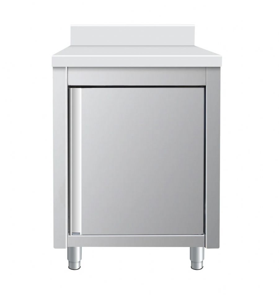 Meuble bas en inox 1 porte battante avec dosseret - 600x600x850+100mm