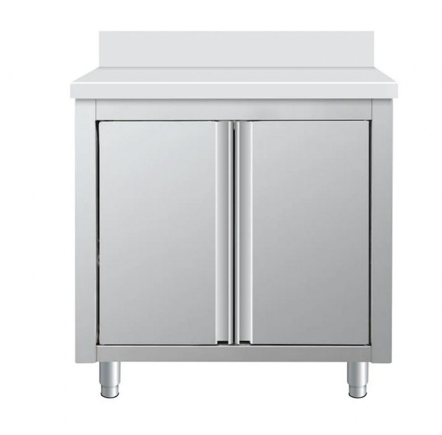 Meuble bas en inox 2 portes battantes avec dosseret - 800x600x850+100mm