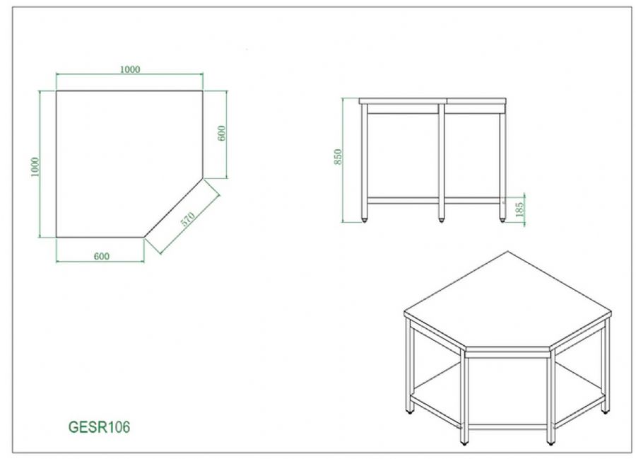 Table de travail inox angulaire - 1000x1000x600x850 mm