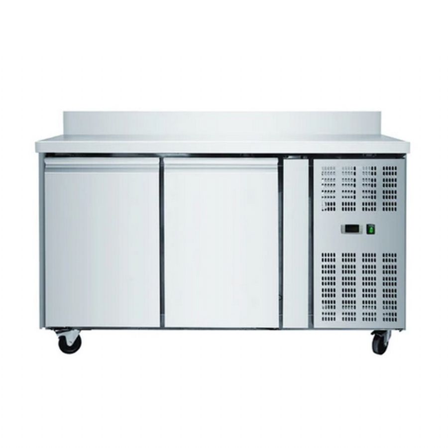 Table réfrigérée inox positive avec évaporateur ventilé - 2 portes - 228 litres - Avec dosseret - SN2201X