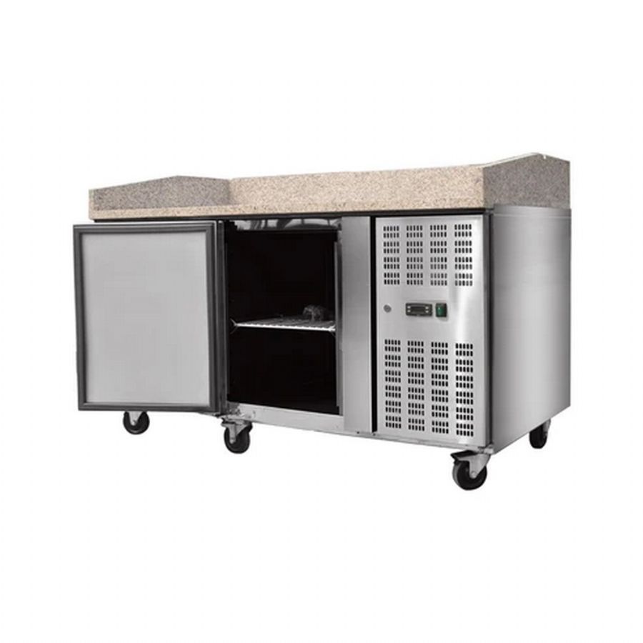 Table à pizza réfrigérée positive inox dessus granite avec 2 portes pleines battantes et - 1510 x 800 x 1000 mm