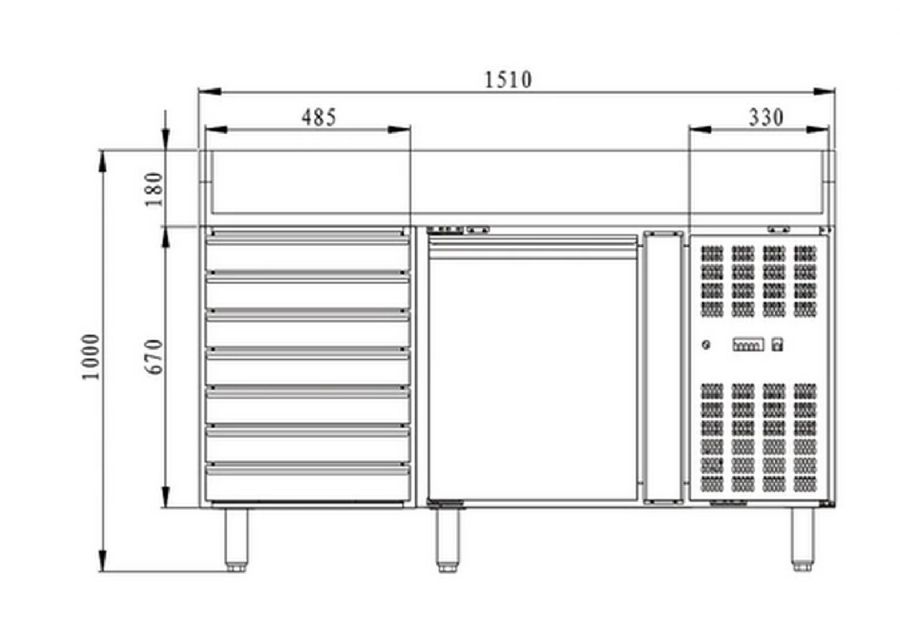 Meuble a pizza positif 1 porte et 1 compartiment de 5 tiroirs avec granit au dessus - 390L