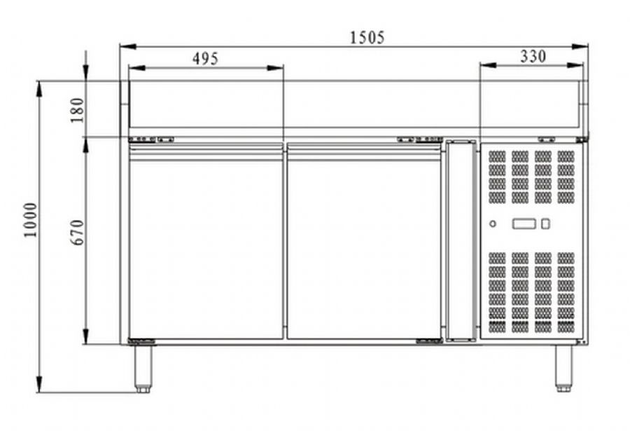 Table à pizza réfrigérée positive inox dessus granite avec 2 portes pleines battantes et - 1510 x 800 x 1000 mm