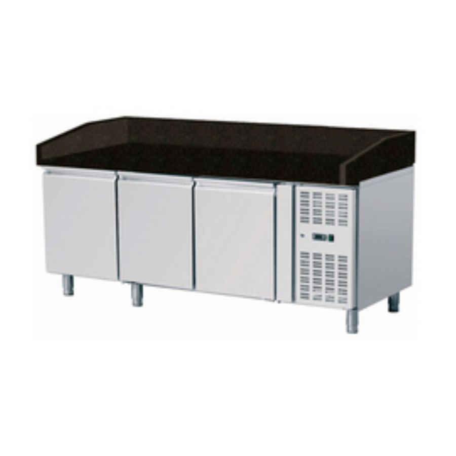 Table à pizza inox positive dessus granit avec 3 portes - 1795x700x850 mm