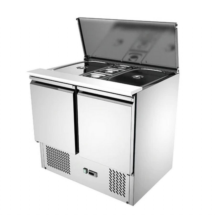 Table de préparation réfrigérée positive 2 portes battantes 0/+10°C 5x GN 1/6 - 900x700x1000 mm