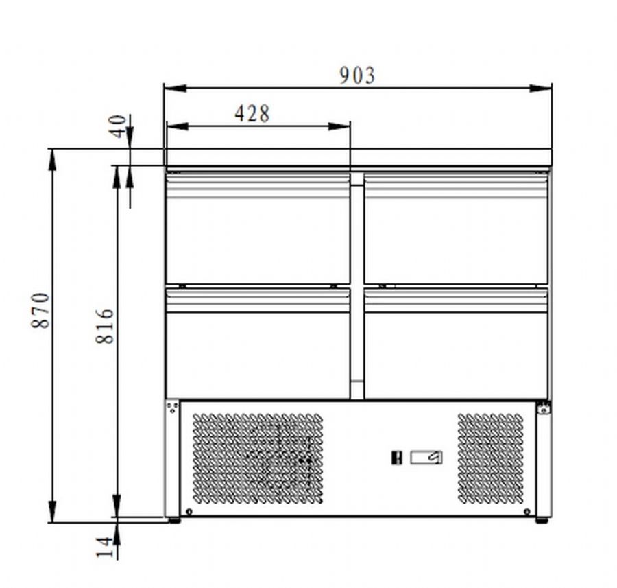 Découvrez la Table de travail réfrigérée 2 compartiments de 2 tiroirs chacun - 230L, un meuble réfrigéré professionnel essentiel pour les cuisines qui nécessitent un plan de travail froid cuisine flexible et efficace. Avec la référence THS9014D, cette unité allie performance et praticité pour répondre aux besoins intensifs du secteur gastronomique.