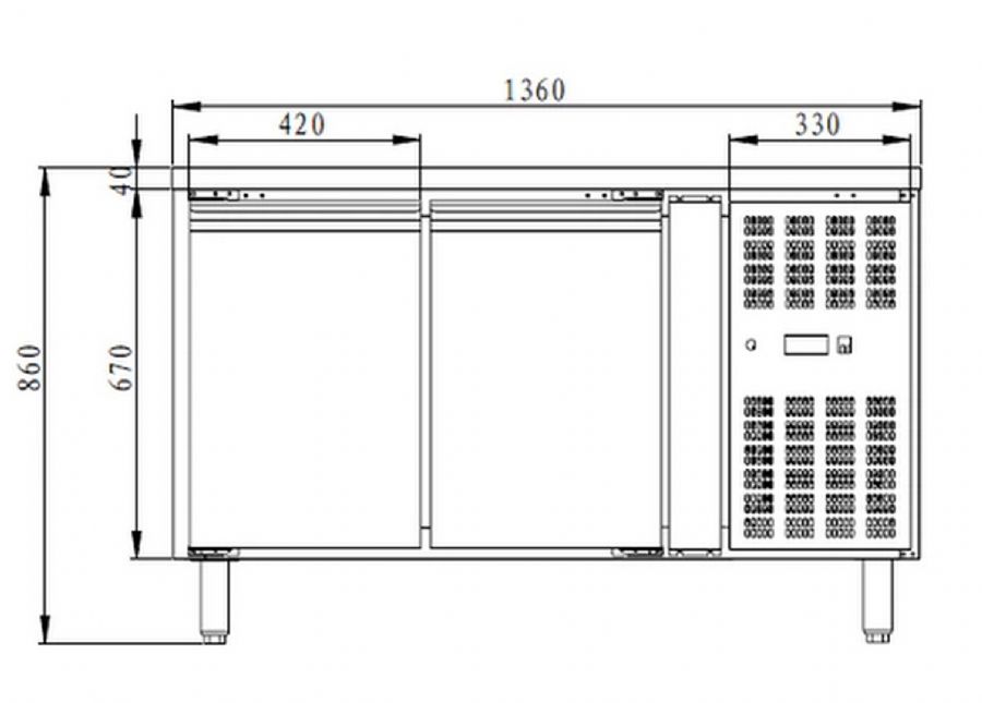 La Table de travail réfrigérée négative 2 portes est un choix parfait pour les professionnels de la gastronomie à la recherche d’une solution de refroidissement haute performance. Avec une capacité de 282 litres et des dimensions de 1360x600x860 mm, ce meuble réfrigérant de cuisine offre une plage de température de -18 à -22°C, garantissant une conservation optimale de vos produits.