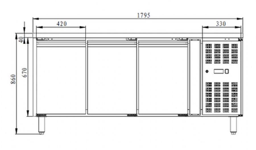 Table de travail réfrigérée négative 3 portes -18 / -22°c - 417L