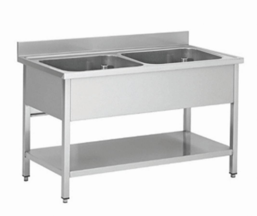 Plonge avec étagère 2 bacs à gauche - 1600x700x850mm