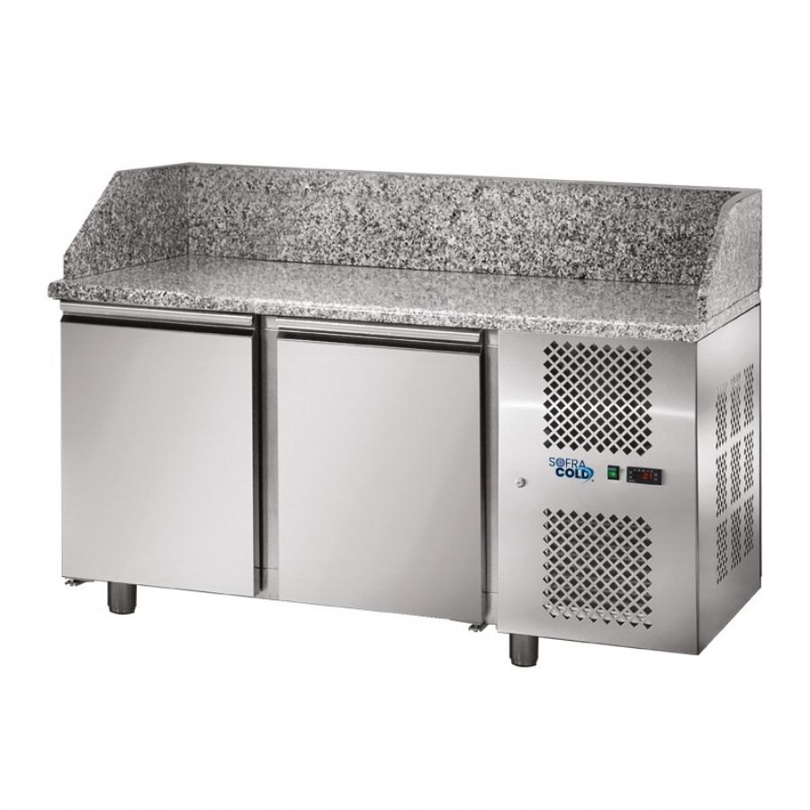 Table à pizza réfrigérée positive inox dessus granite avec 2 portes pleines battantes et - 1510 x 800 x 1000 mm