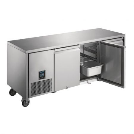 Table réfrigérée inox négative avec évaporateur ventilé - 2 portes - 282 litres - Sans dosseret - GN2101BTX