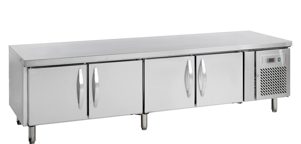 Soubassement réfrigéré positive sous-comptoir inox avec 4 portes pleines battantes GN 1/1 sans dosseret - 2230 x 700 x 670 mm