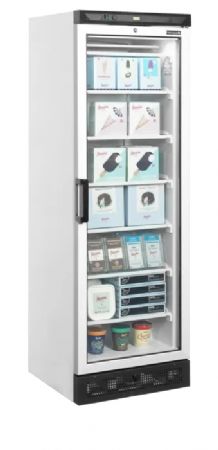 Armoire congélateur professionnelle blanche avec une porte vitrée 340 litres - 600 x 585 x 1855 mm
