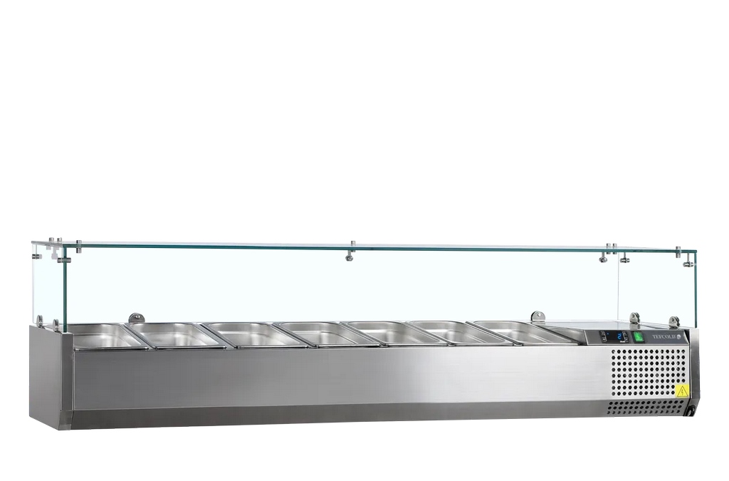 Vitrine à ingrédients positive avec pare-haleine pour 7 bacs GN 1/3 - 1795x396x436 mm