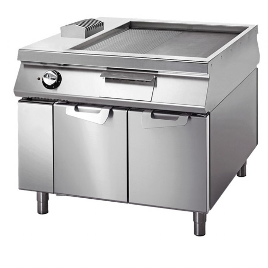 Plancha électrique sur coffre avec portes et surface 1/2 lisse 1/2 rainurée 900x735 mm puissance 15 kW