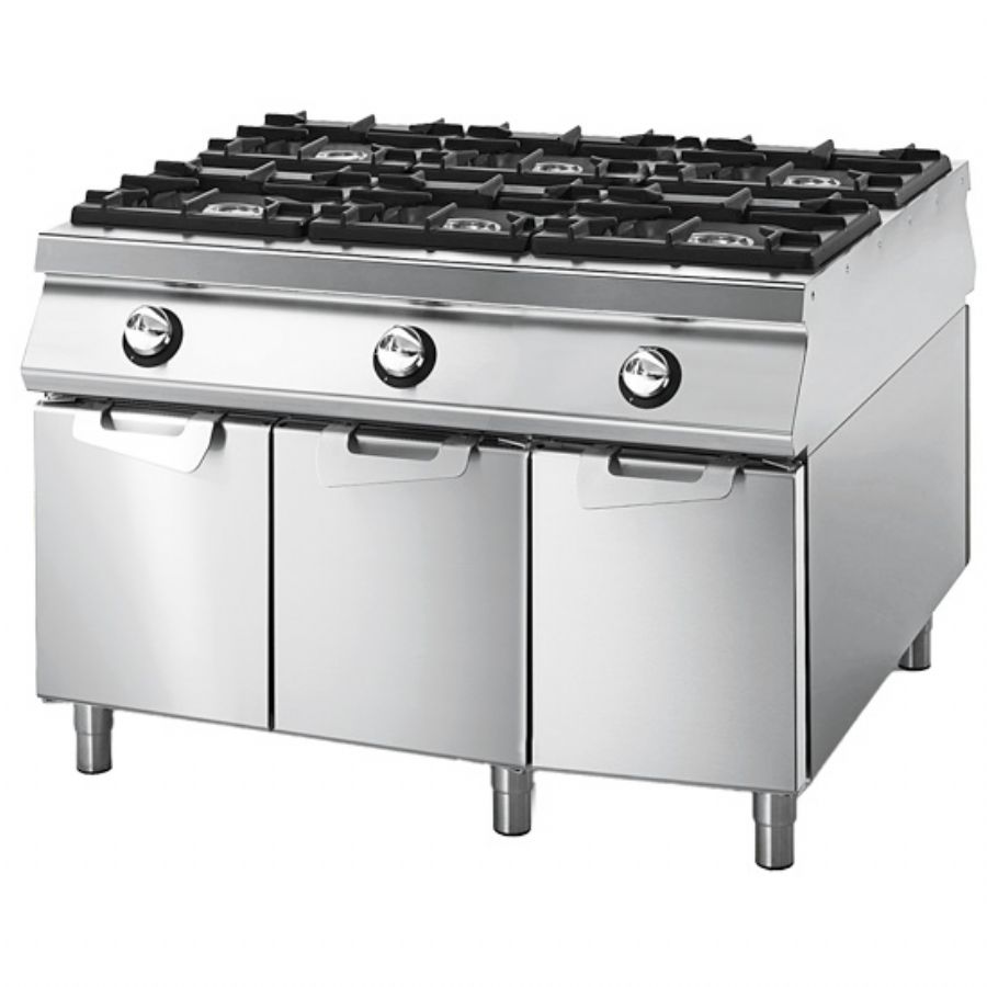 Cuisinière gaz sur coffre avec portes avec 6 foyers puissance 31,5 kW