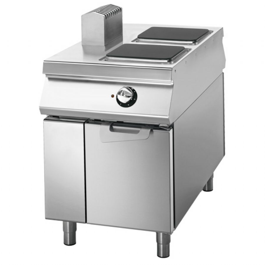 Cuisinière électrique triphasée sur coffre avec portes avec 2 foyers puissance 8 kW
