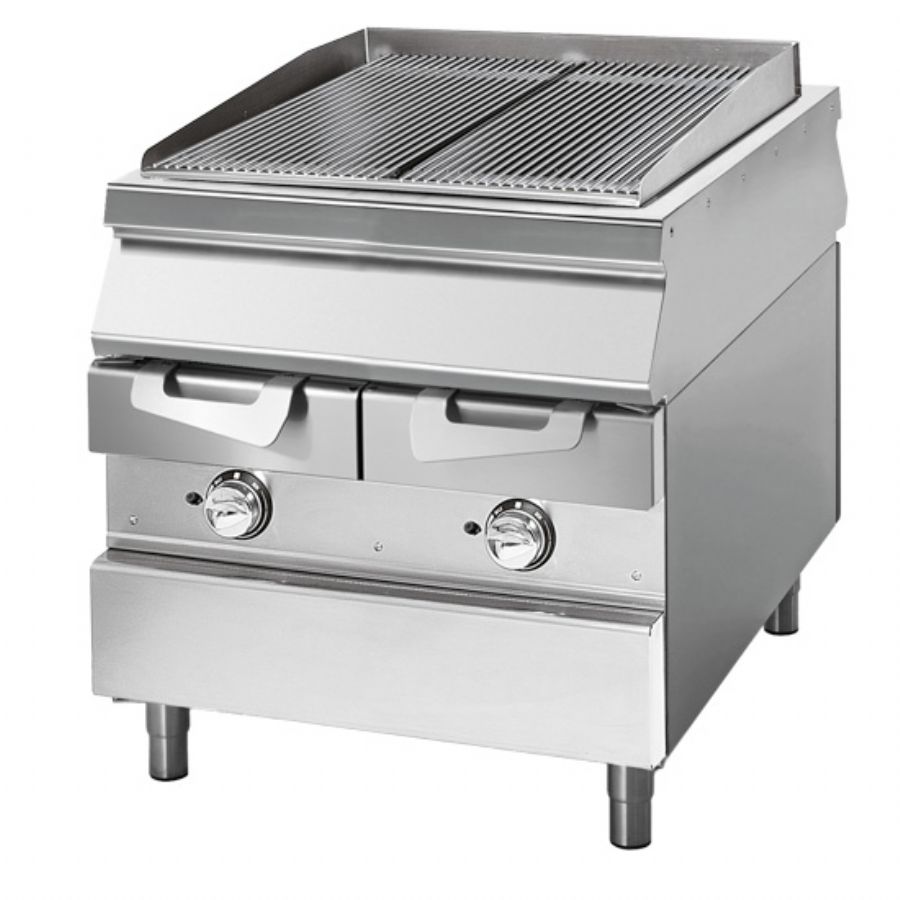 Plancha électrique sur coffre avec portes et surface 1/2 lisse 1/2 rainurée 900x735 mm puissance 15 kW